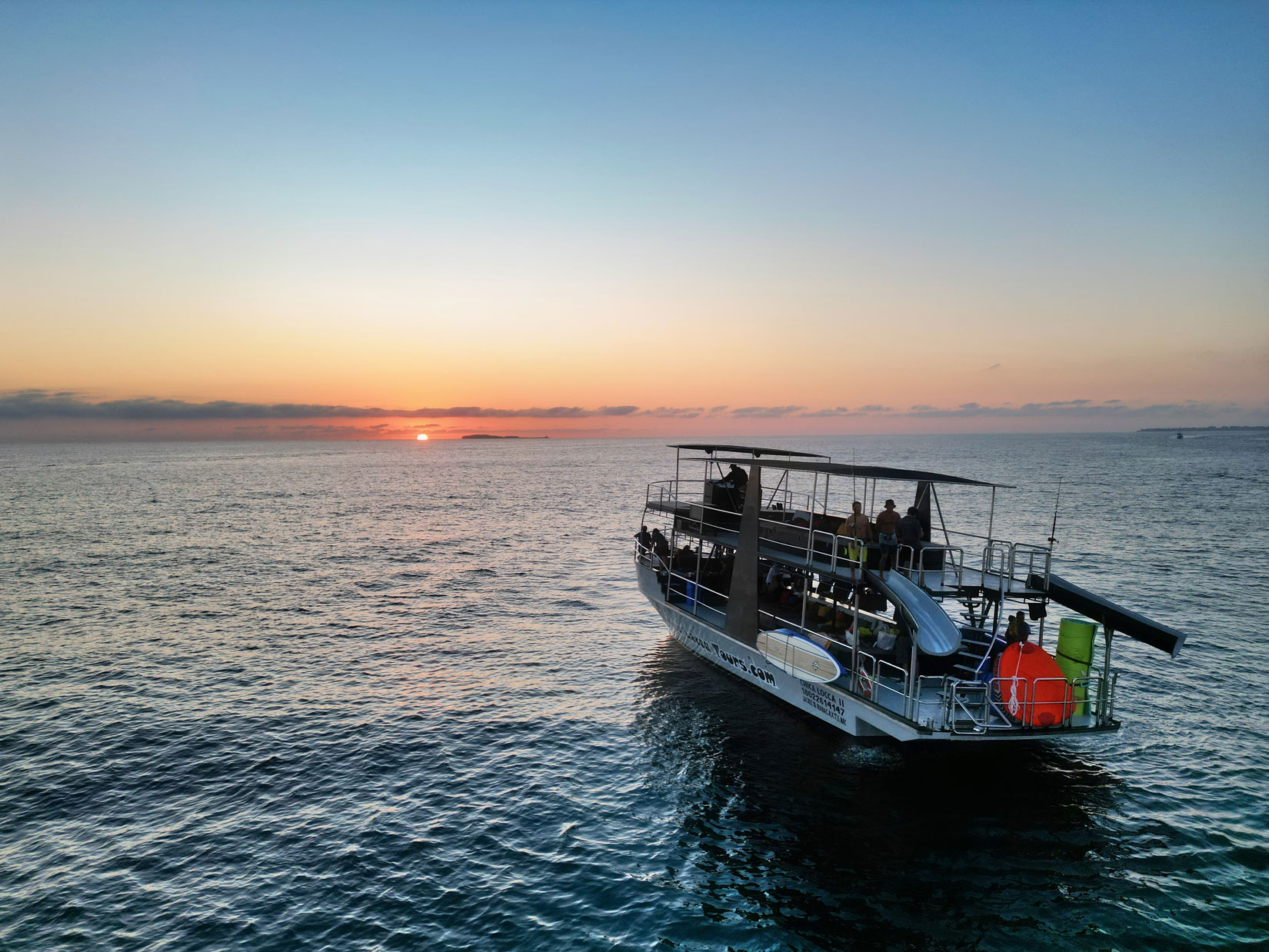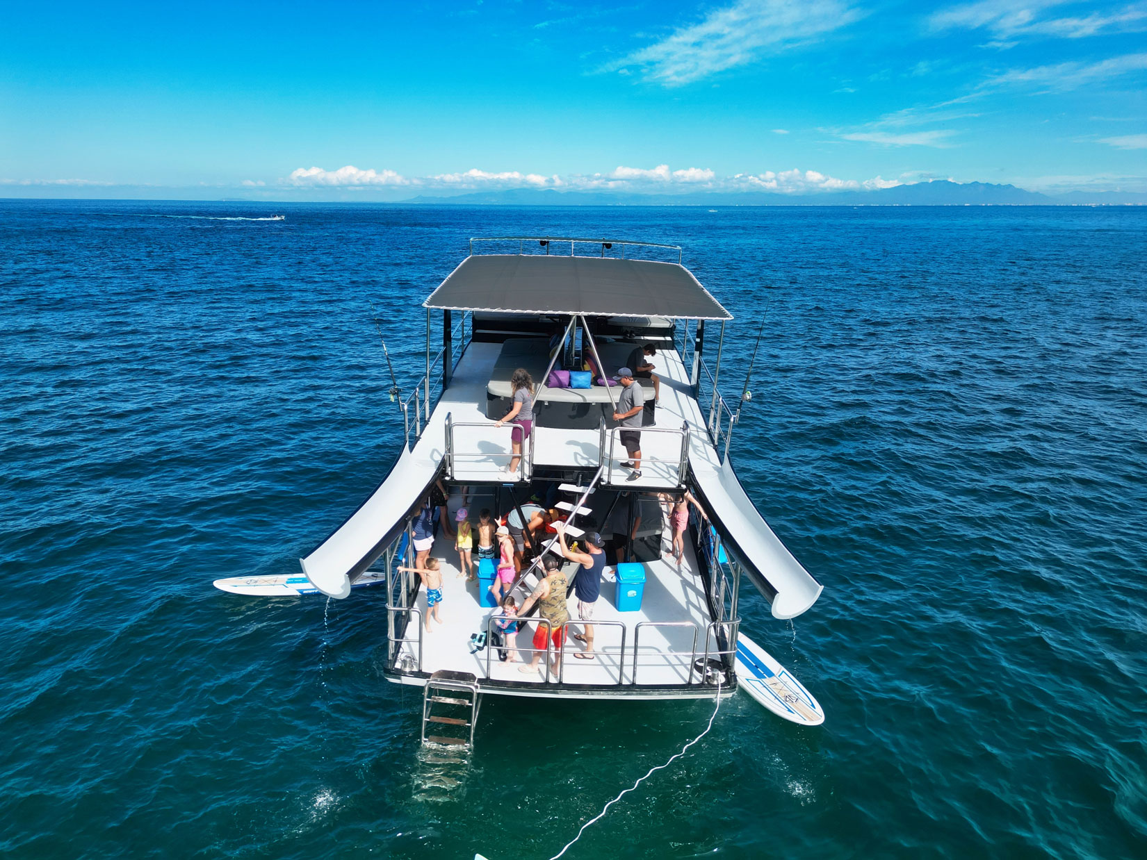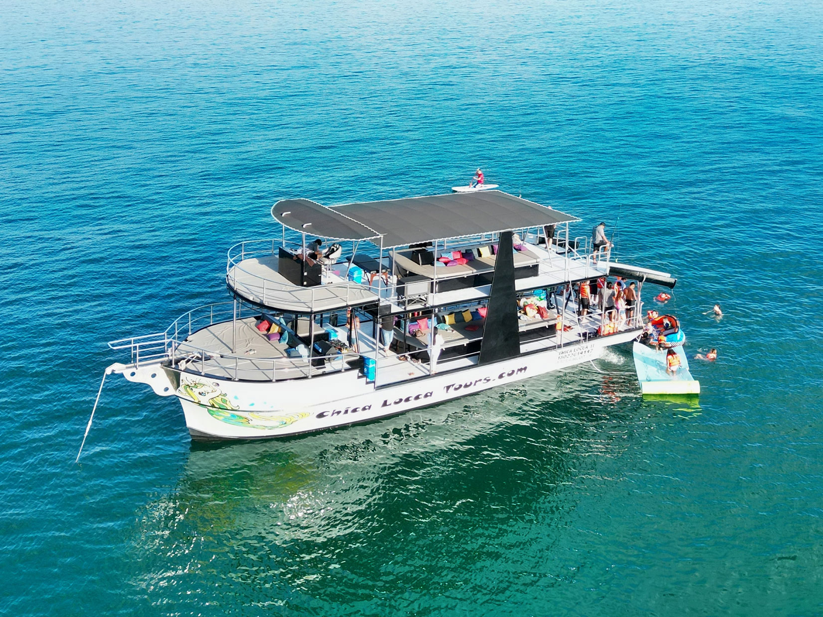 Chica Fun 2 es el yate de aventura definitivo, diseñado específicamente para una experiencia inolvidable. Este yate de 55 pies, de un solo casco y dos niveles, tiene una velocidad de crucero rápida que permite más tiempo para explorar tu destino. Con sus recientes mejoras, Chica Fun 2 ofrece opciones inigualables de sol y sombra, junto con asientos cómodos, dos toboganes acuáticos y una variedad de juguetes acuáticos para diversión sin fin, con dos grandes cubiertas y baños.